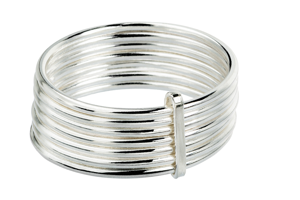 Pierścionek złożony z siedmiu elementów został wykonany ręcznie ze srebra. Nowoczesny design i szlachetny charakter biżuterii sprawia, że nawet codzienna stylizacja zyska elegancki blask.