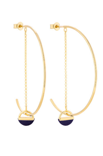 Moon – Kolczyki z łańcuszkiem i kamieniem ozdobnym Noc Kairu, srebro złocone